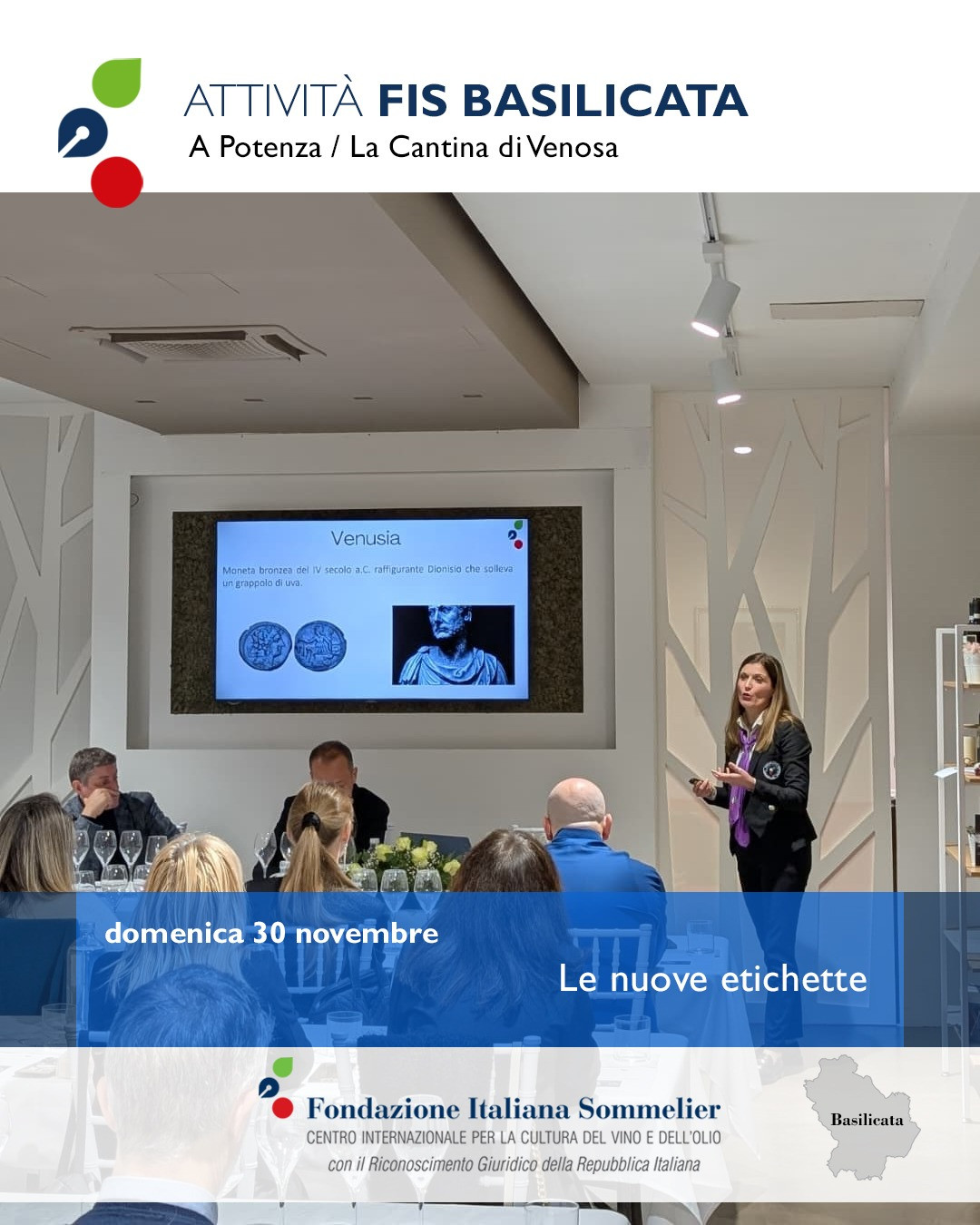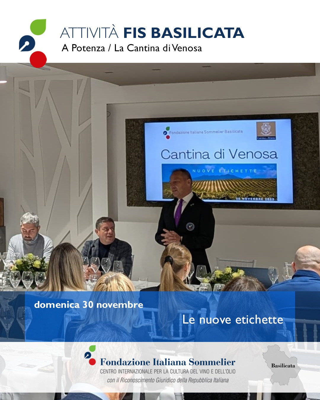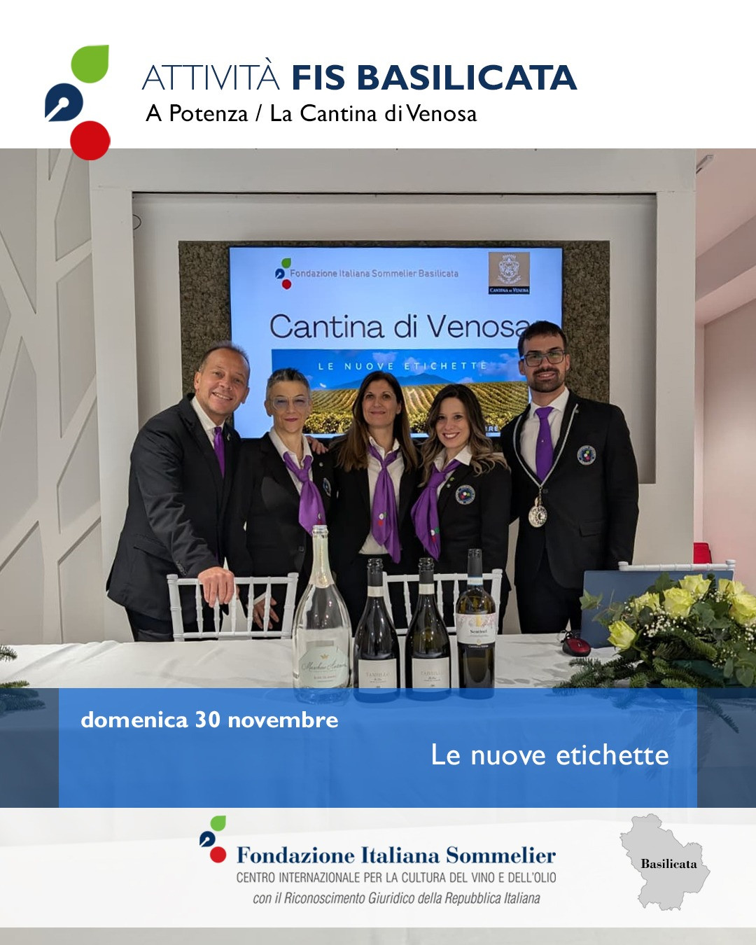 La degustazione si è svolta alla presenza dell’enologo, Donato Gentile, del Presidente della Cantina, Francesco Perillo, e del Presidente della Fondazione Italiana Sommelier Basilicata, Nicola Gentile.